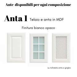 CUCINA come da schema con ANTA 1 Euro 3000 inclusa IVA trasporto e montaggioCucina come da schema con ANTA 2 Euro 3650 inclusa IVA trasporto e montaggioAnte e scocche in vari colori a scelta.Tempi di consegna 4 settimane dall'ordine