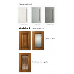 Ante e scocche in vari colori a scelta.CUCINA come da schema con ANTA 1 Euro 2960 inclusa IVA trasporto e montaggioCucina come da schema con ANTA 2 Euro 3600 inclusa IVA trasporto e montaggioTempi di consegna 4 settimane dall'ordine