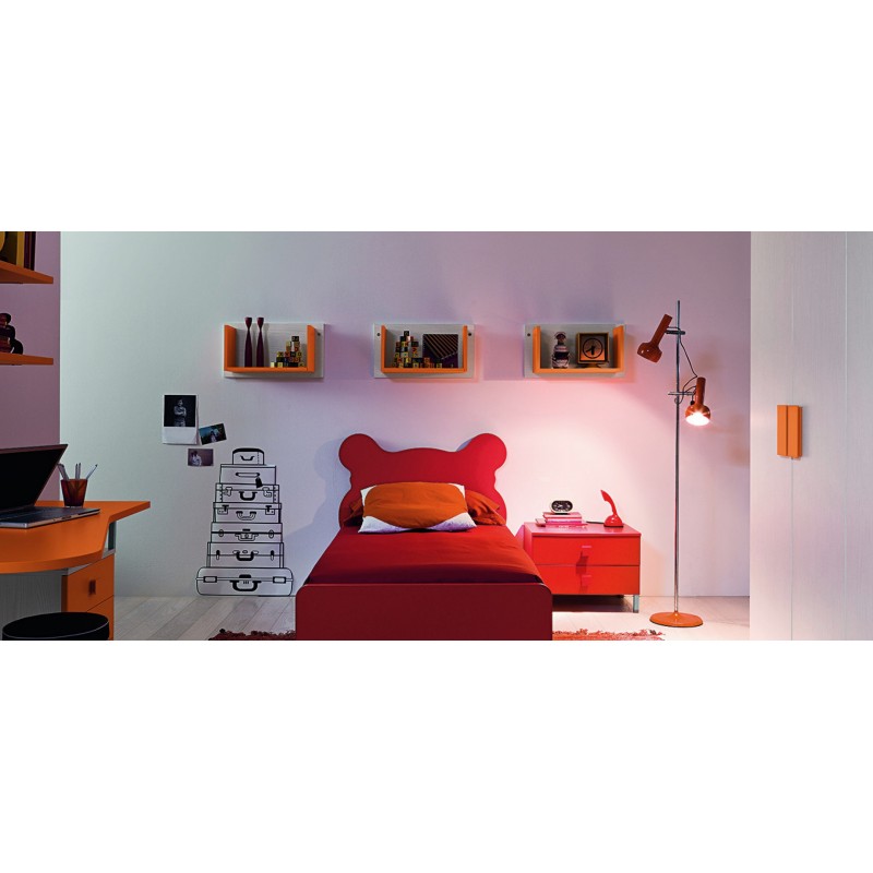1 scrittoio -1 sedia - 2 mensola - 2 coppie reggimensole - 3 libreria pensile - 1 letto singolo - 1 comodino a due cassetti con piedini in metallo -2 armadio a 2 ante