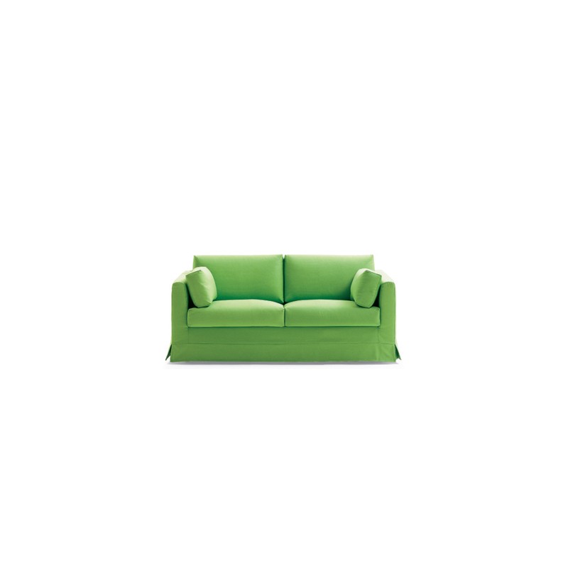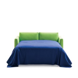 Divano letto. Materasso a molle,spessore 15 cm. Rete in maglia di acciaio elettrosaldato. Struttura in acciaio, imbottitura in poliuretano espanso e ovatta poliestere. Del tutto sfoderabile.