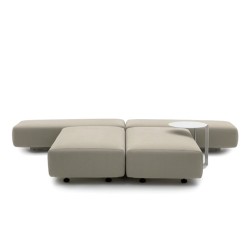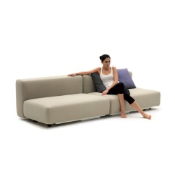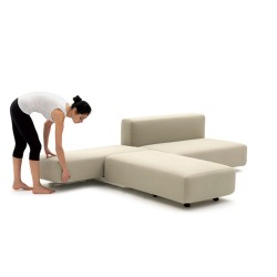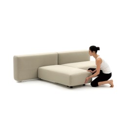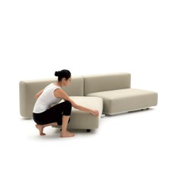 Divano letto minimalista. Struttura in legno multistrato e metallo verniciato, imbottitura in poliuretano espanso e ovatta poliestere. Moduli componibili in un comodo letto matrimoniale.