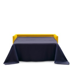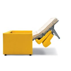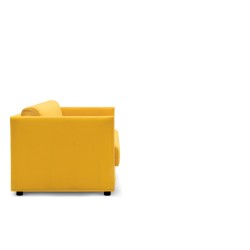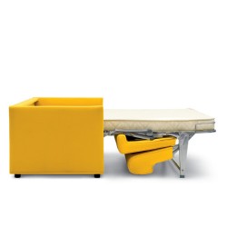 Divano letto 3 posti. Porta cuscini inserito nello schienale. Spesso materasso in poliuretano espanso senza CFC, o in lattice naturale. Rete del letto in maglia di acciaio elettrosaldata con un piano elastico che combacia con la seduta del divano. Rivestimento sfoderabile.