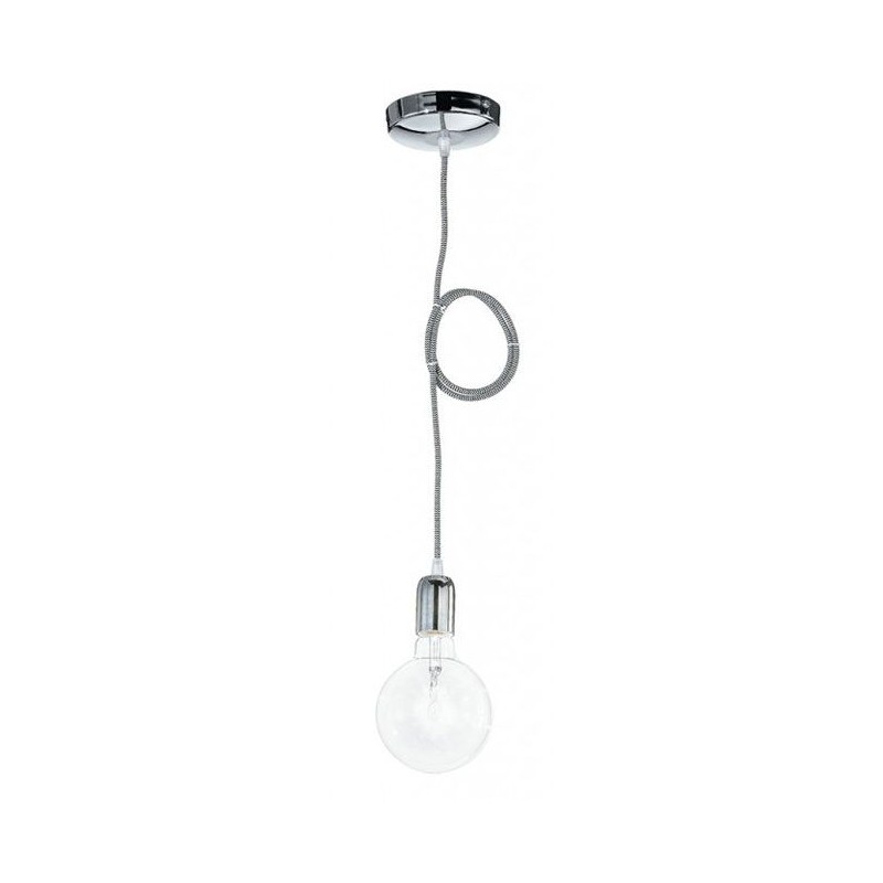 Lampada a sospensione cavo in tessuto BIANCO NERO e finiture cromo