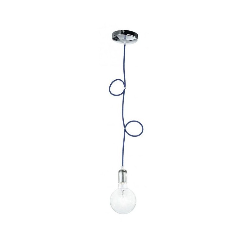 Lampada a sospensione cavo in tessuto BLU e finiture cromo