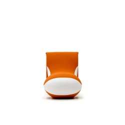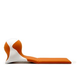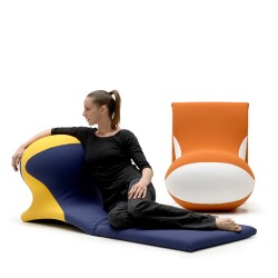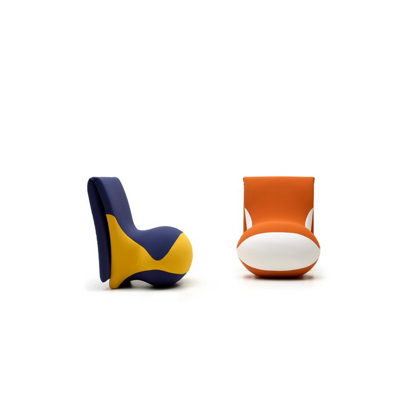 Poltroncina trasformabile . Struttura in acciaio, imbottitura in poliuretano espanso e fibra poliesteri, rivestimento sfoderabile in poliestere colorato.