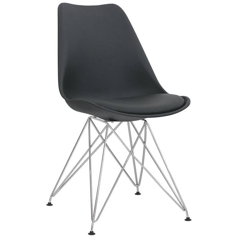 Struttura in metallo cromato, scocca in polipropilene, cuscino in ecopelle.